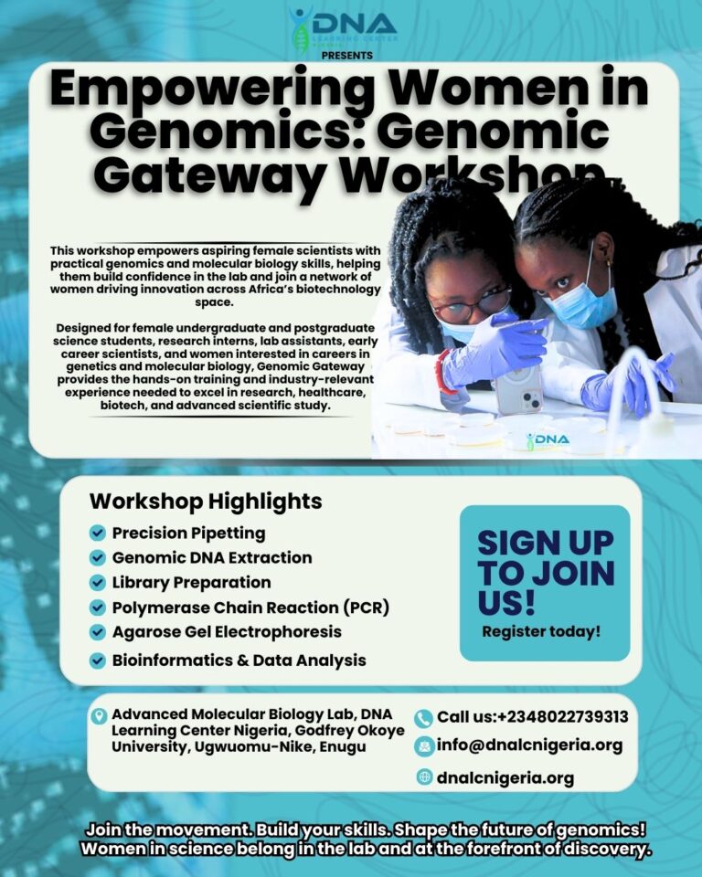 The DNA Learning Center Nigeria (DNALC Nigeria) will host the Genomic Gateway Workshop, a transformative program designed to empower women in science with practical genomics
